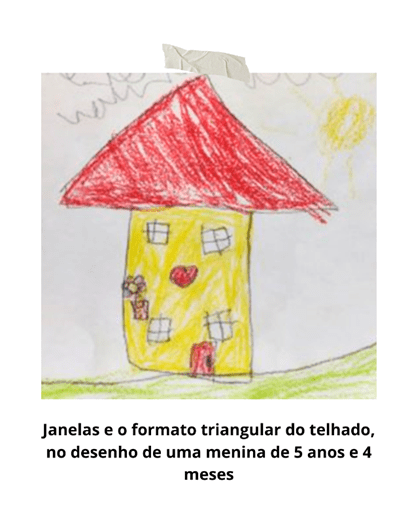 As janelas também começam a aparecer e, frequentemente, revelam a disponibilidade de interação da criança. Numa leitura mais psicológica, janelas abertas, que expõem excessivamente o interior da casa, podem indicar uma certa vulnerabilidade — a criança ainda não se sente suficientemente segura para lidar com algumas questões e necessita do apoio afetivo de um adulto. Já janelas com grades, cortinas ou persianas, que cobrem parcialmente a vista, podem indicar que ela se sente protegida e segura para lidar com o outro. Por sua vez, janelas sempre fechadas podem sinalizar certo embotamento afetivo, o que merece atenção e investigação. Quando aparecem pessoas na janela ou fora da casa, olhando para dentro, geralmente isso indica que a criança está em um momento de maior exploração do mundo externo — podendo, inclusive, desenhar a si mesma do lado de fora da casa.