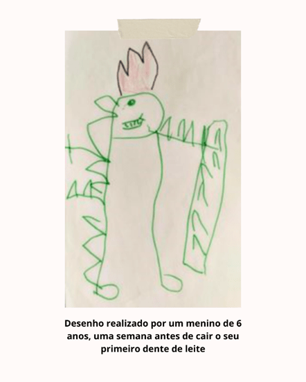 Outros pequenos elementos também podem sinalizar fases importantes. Quando surgem espontaneamente no desenho — como gramados pontiagudos, passarinhos em forma de V ou bandeirinhas coloridas —, podem indicar o início da troca dos dentes de leite, um momento forte de transição física e energética no corpo da criança.
